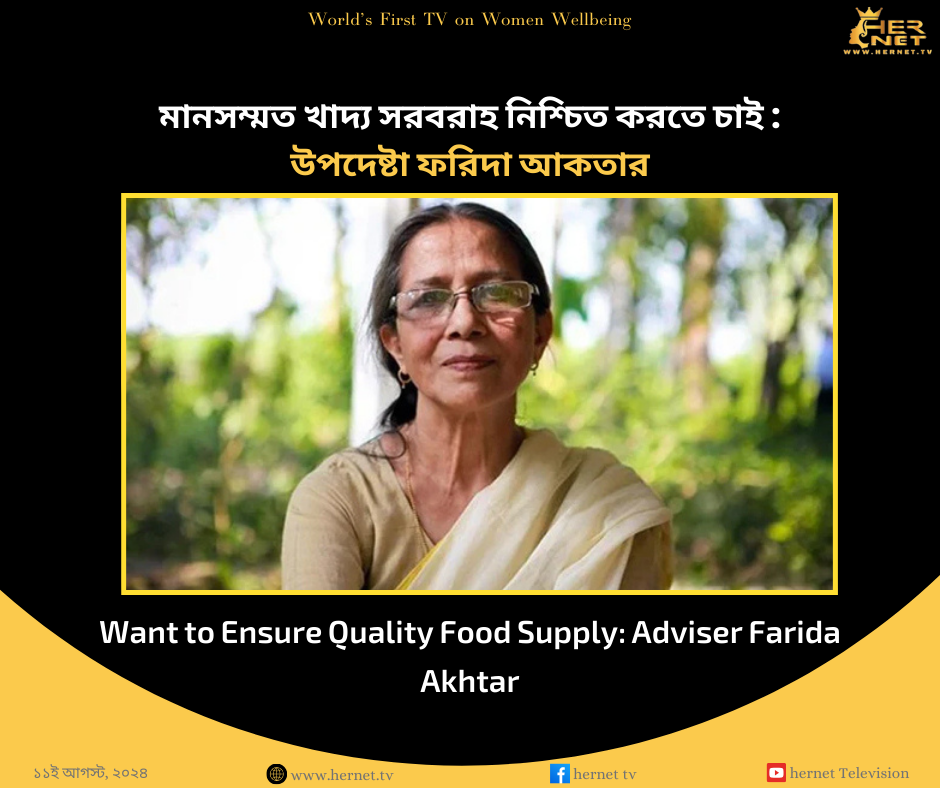 মানুষের খাদ্য সরবরাহ নিশ্চিত করার ওপরে গুরুত্ব দিতে চান মৎস্য ও প্রাণিসম্পদ উপদেষ্টা ফরিদা আকতার। একইসঙ্গে সহজে পুষ্টি নিশ্চিত করতে চান। তিনি বলেছেন, দেশের মৎস্য সম্পদ কাজে লাগাতে কাজ করব।