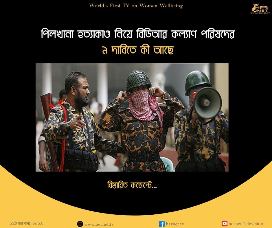 দাবিতে আরও রয়েছে পিলখানা হত্যাকাণ্ডের উদ্দেশ্য ও কুশীলবদের চিহ্নিত করতে স্বাধীন তদন্ত কমিটি গঠন করতে হবে। পিলখানায় শাহাদাতবরণকারী ৫৭ সেনা কর্মকর্তাসহ ৭৪ জনকে শহীদের মর্যাদা দিতে হবে। ২০০৯ সালের ২৫ ফেব্রুয়ারি পিলখানা হত্যকাণ্ডের ঘটনা ঘটে। ওই দিনকে ‘পিলখানা ট্র্যাজেডি দিবস’ হিসেবে ঘোষণা করার দাবিও জানান পরিষদের নেতারা। লিখিত বক্তব্যে বলা হয়, যেসব নিরীহ বিডিআর সদস্যদের নির্যাতনের পর হত্যা করা হয়েছে, তাঁদের তালিকা করে পরিবারকে ক্ষতিপূরণ দেওয়া, হত্যাকাণ্ডে জড়িত আইনশৃঙ্খলা রক্ষাকারী বাহিনীর সদস্যদের শনাক্ত করে বিচারের আওতায় এনে দৃষ্টান্তমূলক শাস্তির ব্যবস্থা, বিভিন্ন মেয়াদে সাজা ভোগকারীদের আগামী ৩০ দিনের মধ্যে জামিন কিংবা মামলা হতে অব্যাহতিসহ চাকরিচ্যুত বিডিআর সদস্যদের চাকরিতে পুনর্বহাল করতে হবে। সংবাদ সম্মেলনে বিডিআর কল্যাণ পরিষদের সমন্বয়ক ফরিদ হোসেনসহ অন্যান্য সমন্বয়ক ও চাকরিচ্যুত বিডিআর সদস্যরা উপস্থিত ছিলেন।