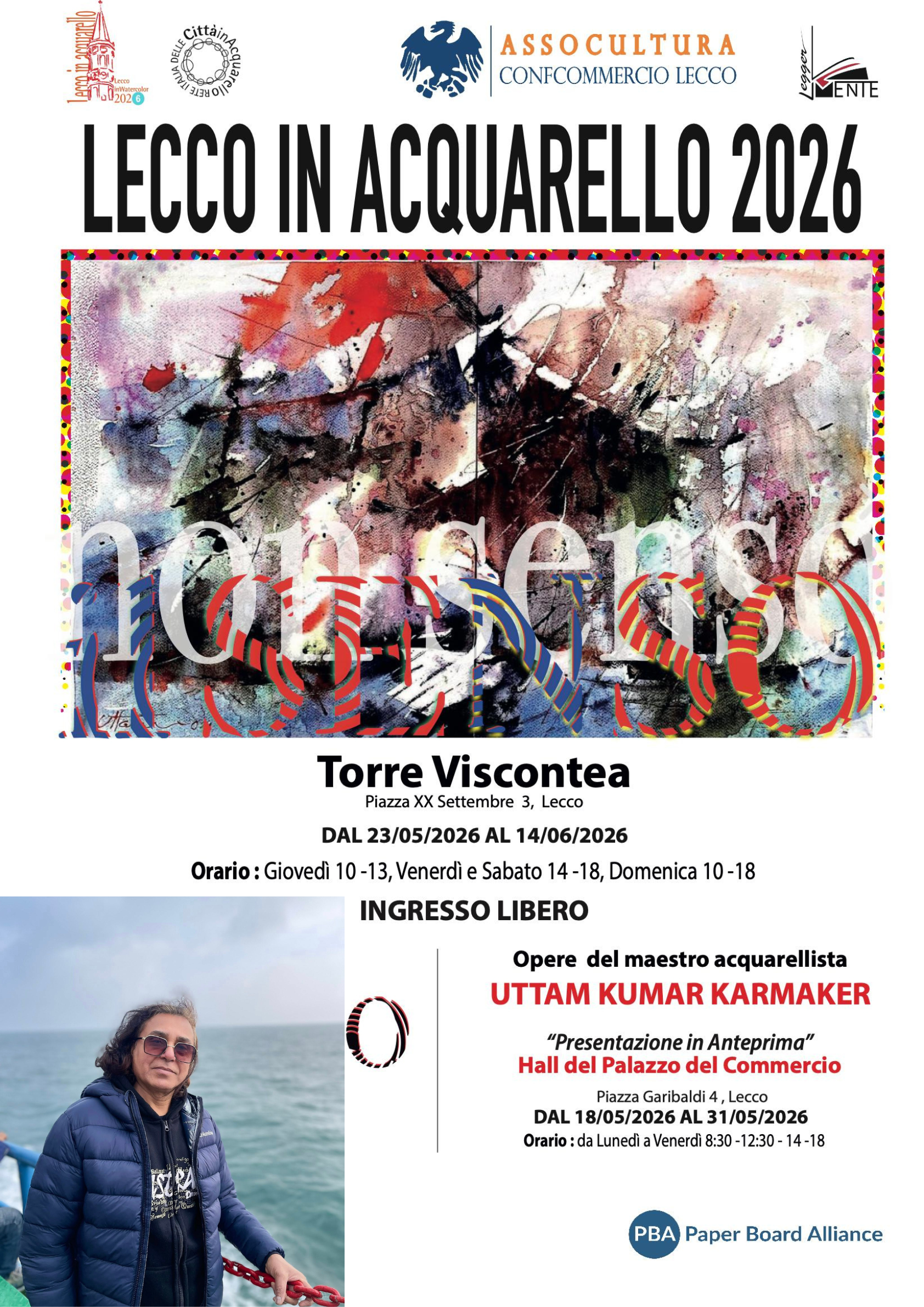Bangladeshi artist Uttam Kumar Karmaker is set to be one of the featured names in the 8th edition of Lecco in Acquarello, a distinguished international watercolor exhibition to be inaugurated on 22 May 2026 at 6:00 PM at the Torre Viscontea in Lecco, Italy.